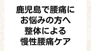 ブログ鹿児島で腰痛にお悩みの方へ|整体による慢性腰痛ケアと改善事例 鹿児島で腰痛にお悩みの方へ|整体による慢性腰痛ケアと改善事例鹿児島市で広がる慢性腰痛の悩み鹿児島市には、日常的に腰痛を抱えながら生活している方が数多くいらっしゃいます。特に40代以降になると、「朝起きた時に腰が重い」「長時間座っていると立ち... 2025.09.19ブログ